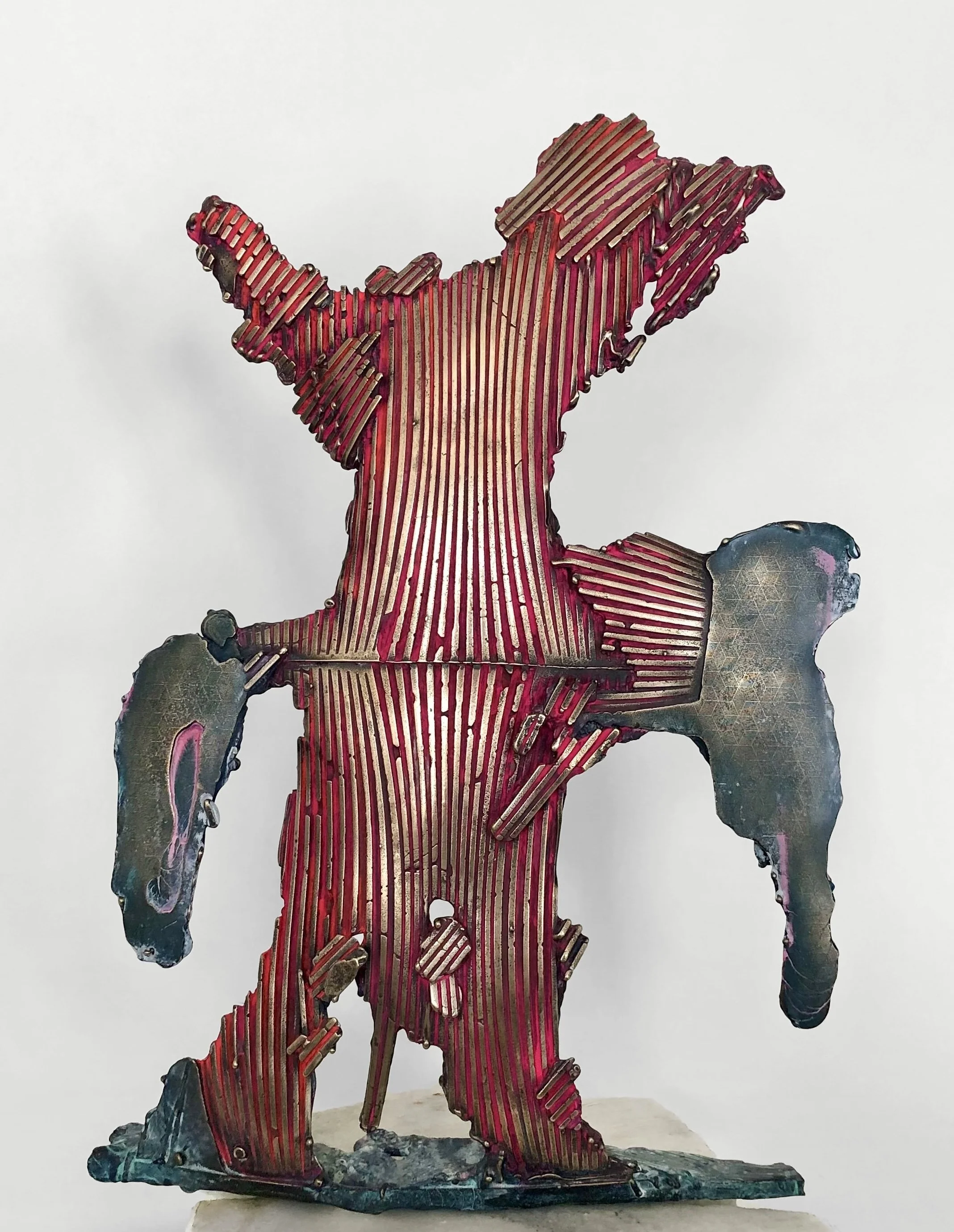 bronze (unique cast), cupric nitrate patina, Flashe paint, Danby marble